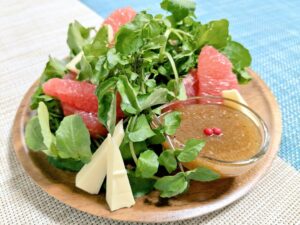 今日は、ピーラーで薄切りにして、クルクル丸めて薔薇の形を作り、残りのラペの上にのせるだけの簡単な盛付けです。雑な所が目立ちません