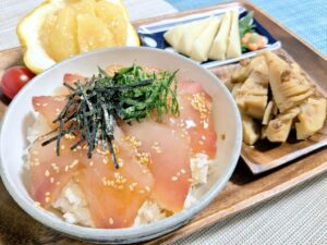 甘夏の風味が爽やかでさっぱりとしたサラダなので、豚丼が更に進みました