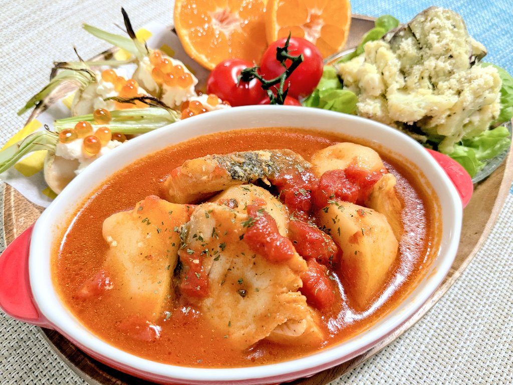 レシピは、ふれ愛交差点の“たらとじゃがいものトマト煮”ですよ