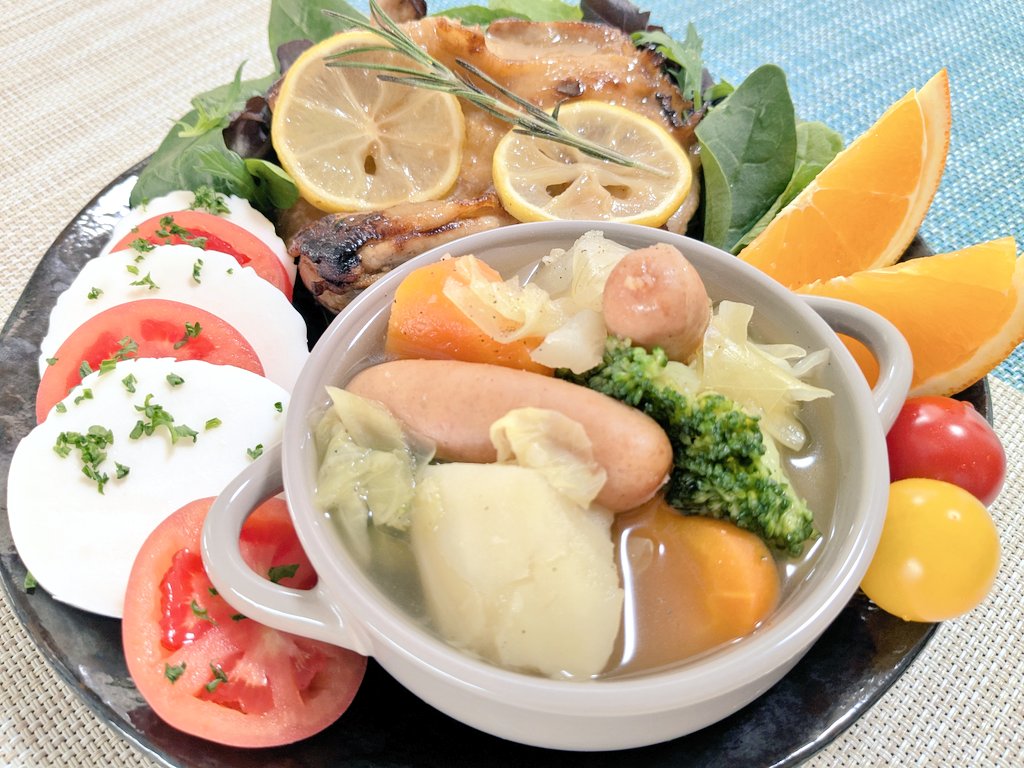 付け合わせは、ポトフを作りました。寒い日にピッタリのお料理ですね