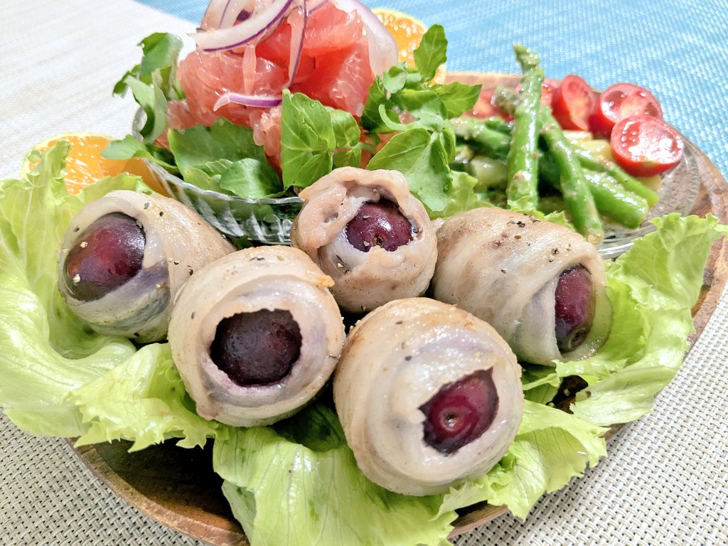 2025.9.30「プルーンの肉巻き」と「アスパラのレモンマスタードマリネ」と「ルビーグレープフルーツとクレソンのサラダ~カルダモン香るハニードレッシング~」